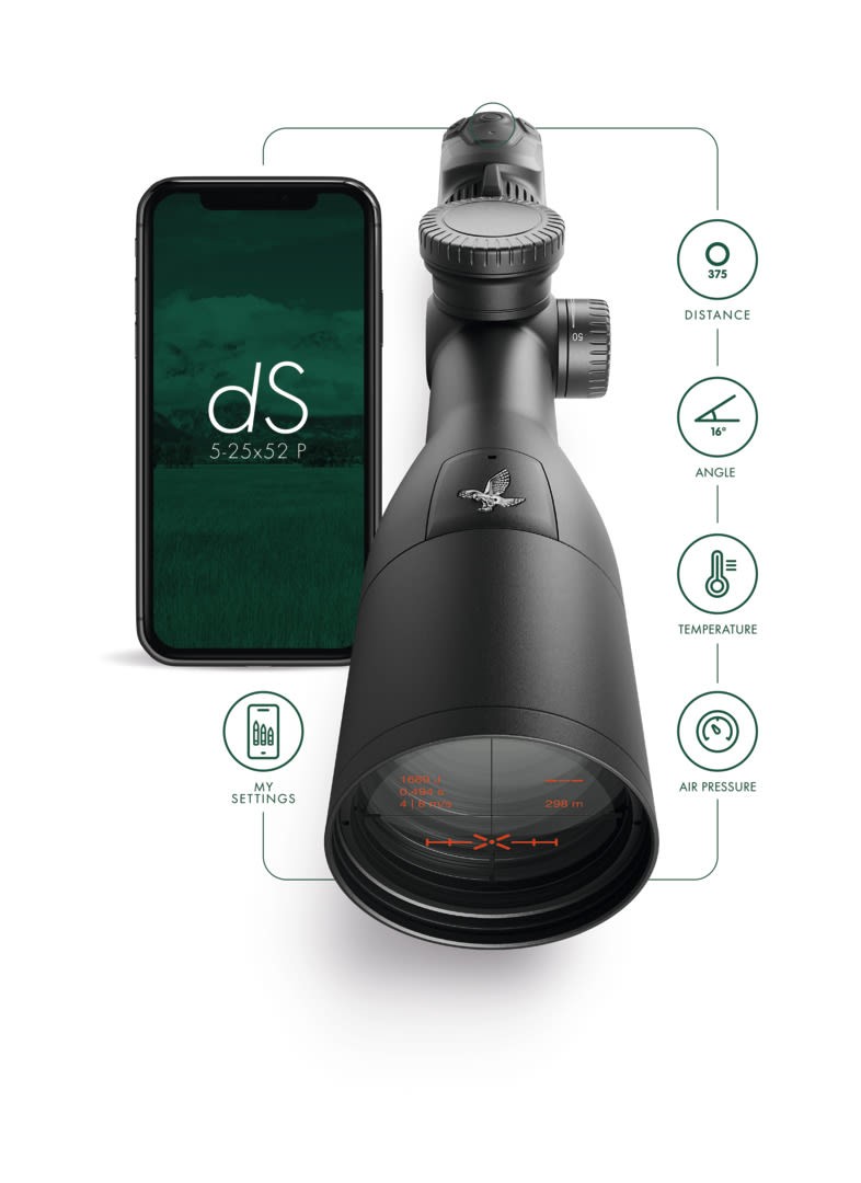 „dS“ automatiškai rodo teisingą taikymo tašką ir visus reikiamus duomenis didele raiška ir realiuoju laiku. Medžiotojams nebereikia rankiniu būdu reguliuoti balistinius bokštelius ir skaičiuoti pataisų, todėl daug lengviau atlikti tolimus šūvius. Taikymo taškas apskaičiuojamas pagal tikslų atstumo matavimą, šaudymo kampą, pasirinktą didinimą, oro slėgį, temperatūrą ir jūsų asmeninio šaunamojo ginklo / šaudmenų derinio balistinius duomenis.